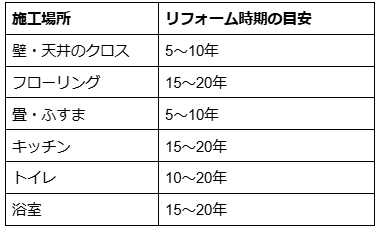 内装リフォームを行う時期の目安は、以下の通りです。